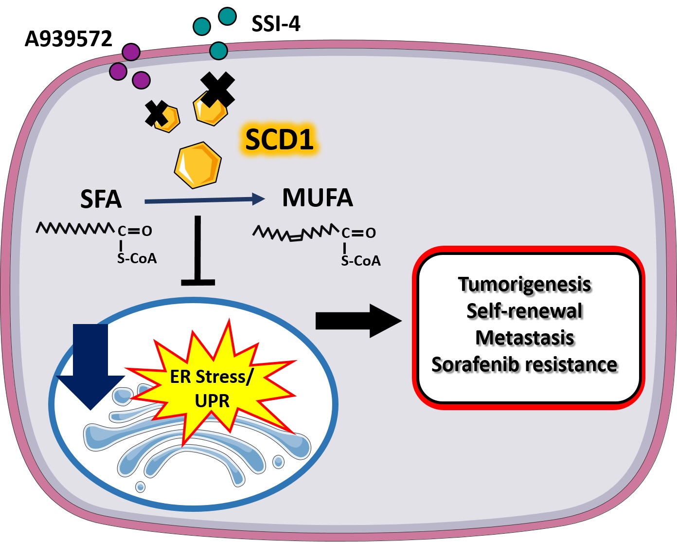 Congrats to Mark and the team on uncovering the role of SCD1 in mediating ER stress regulated liver tumor-initiating cells and sorafenib sensitivity. With this finding, targeting SCD1 alone or in combination with sorafenib may represent a novel personalized medicine against HCC.