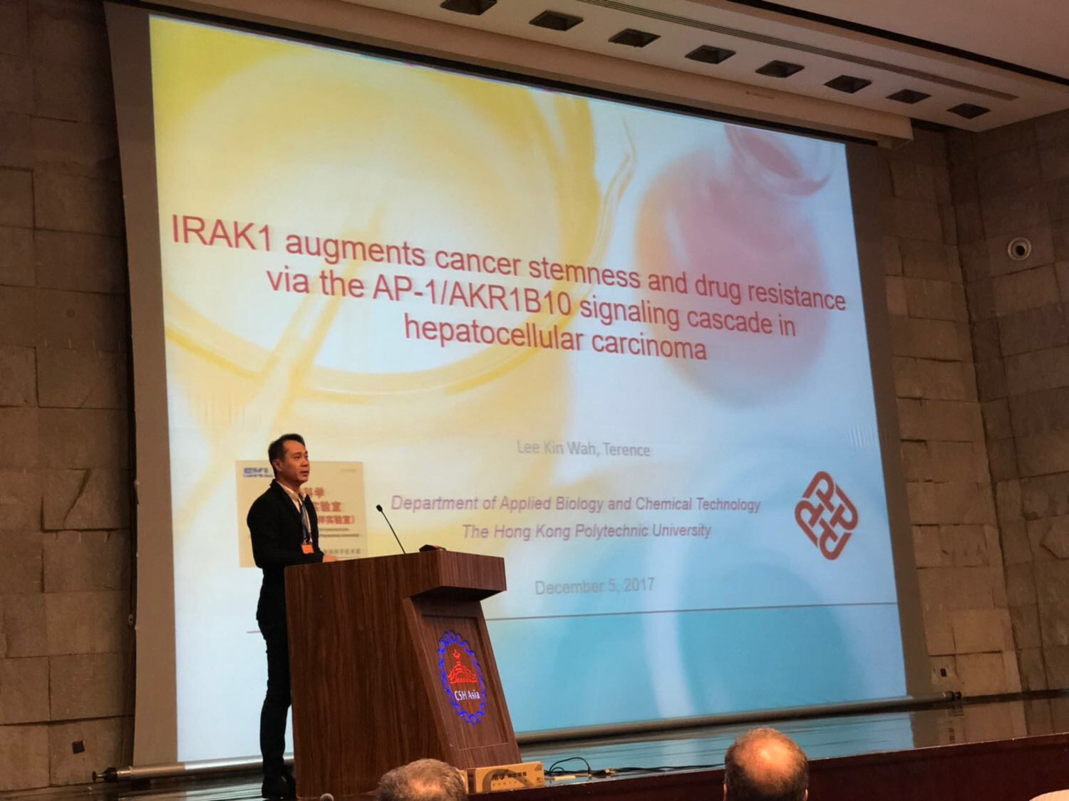 Terence presented the team’s research findings on the role of IRAK1 in maintenance of HCC stemness at the CSH Asia – Liver Biology, Diseases & Cancer conference.