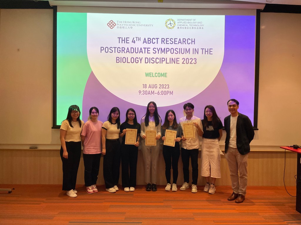18 August 2023 –Congrats to Catherine, Kenneth, Mandy and Rainbow! For acquisition of Best Presentation Awards in 4th ABCT Research Postgraduate Symposium in the Biology Discipline (2023). Well done!