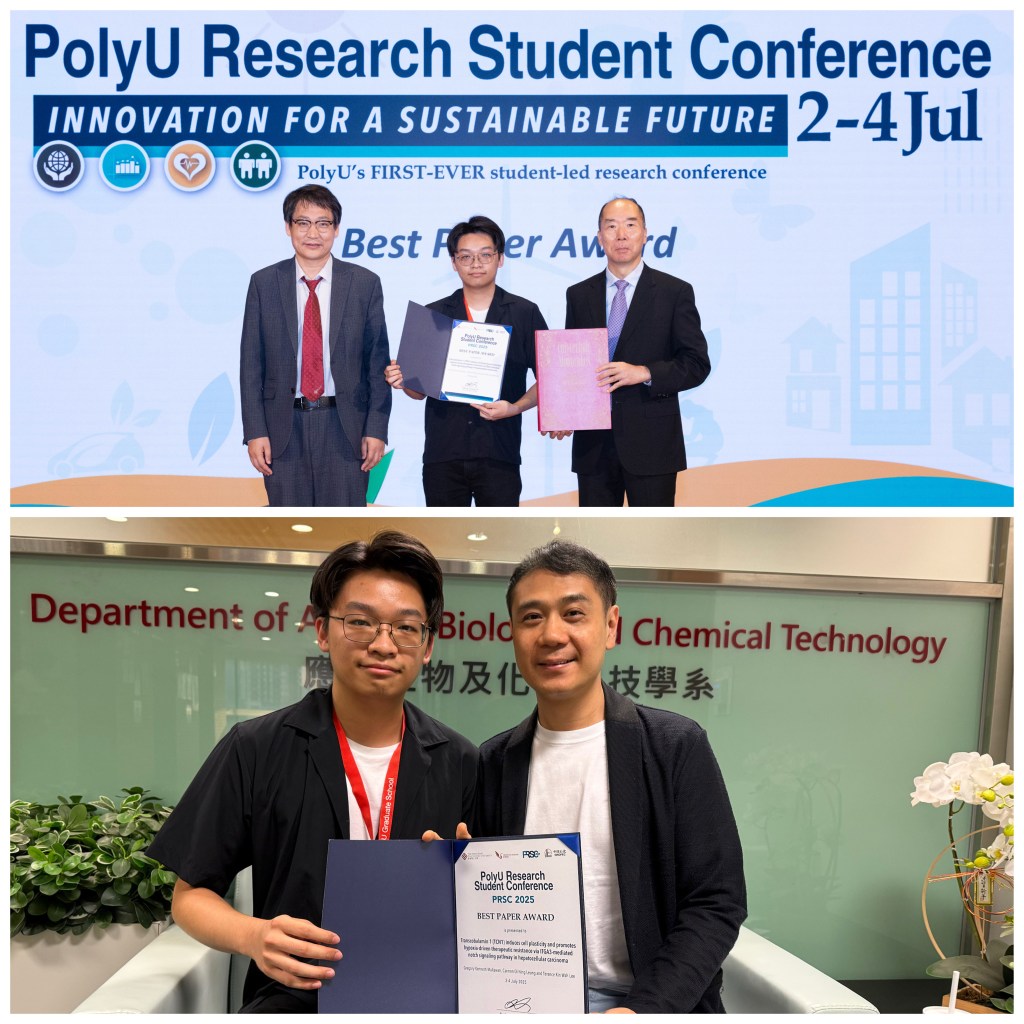 4 Jul 2025 – Congratulations to Kenneth for receiving the Best Paper Award at the PolyU Research Student Conference (PRSC 2025), recognizing his paper as the best among all top submissions this year![]()