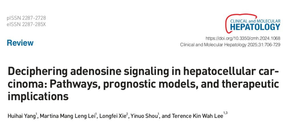 Congrats to Hui Hai for his first-author paper in TLEE Lab in PubMed entitled “Deciphering adenosine signaling in hepatocellular carcinoma: pathways, prognostic models, and therapeutic implications” in Clinical and Molecular Hepatology. Well done! Link to paper